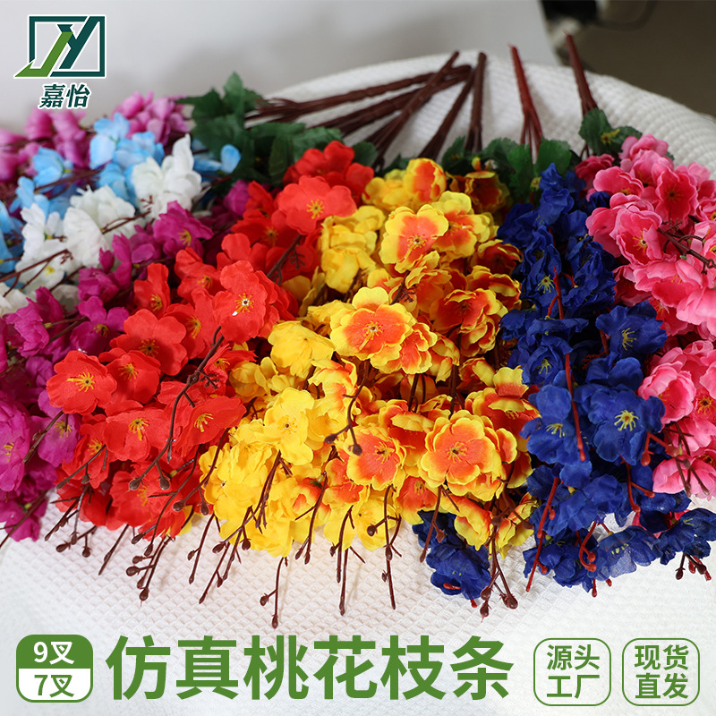 Bunga Persik Imitasi Cabang Bunga Palsu Bunga Tunggal 7 Garpu Bunga Sakura Dekorasi Ruang Tamu
