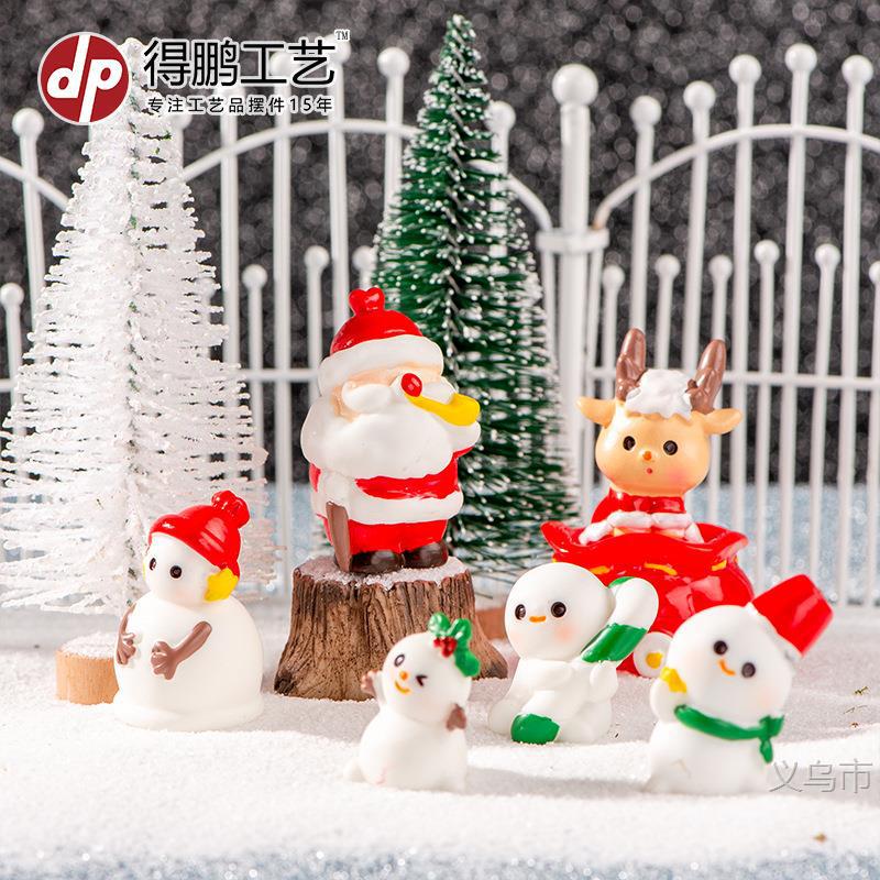 Ornamen Pemandangan Mikro Ornamen Natal Sinterklas Lucu Snowman Mini Boneka Resin Ornamen Kerajinan