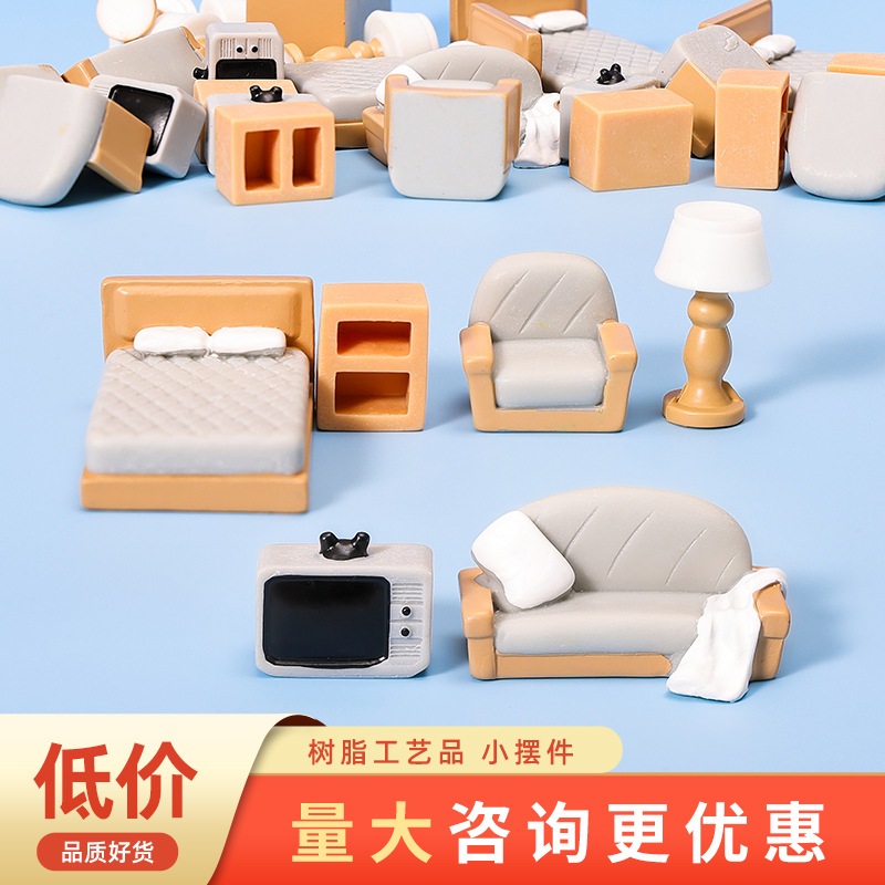 Pabrik Penjualan Langsung Ornamen Pemandangan Mikro Sofa Imitasi Perabot Rumah Boneka Resin DIY Dekorasi Kerajinan Lansekap