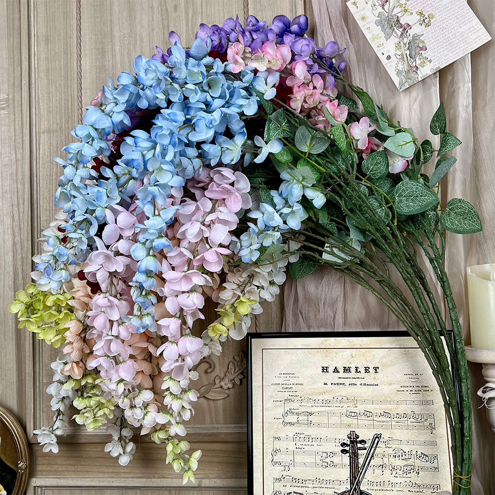 Abule bunga langit-langit bunga buatan wisteria bunga kacang bunga pernikahan hall dekorasi alat peraga bunga palsu pabrik grosir