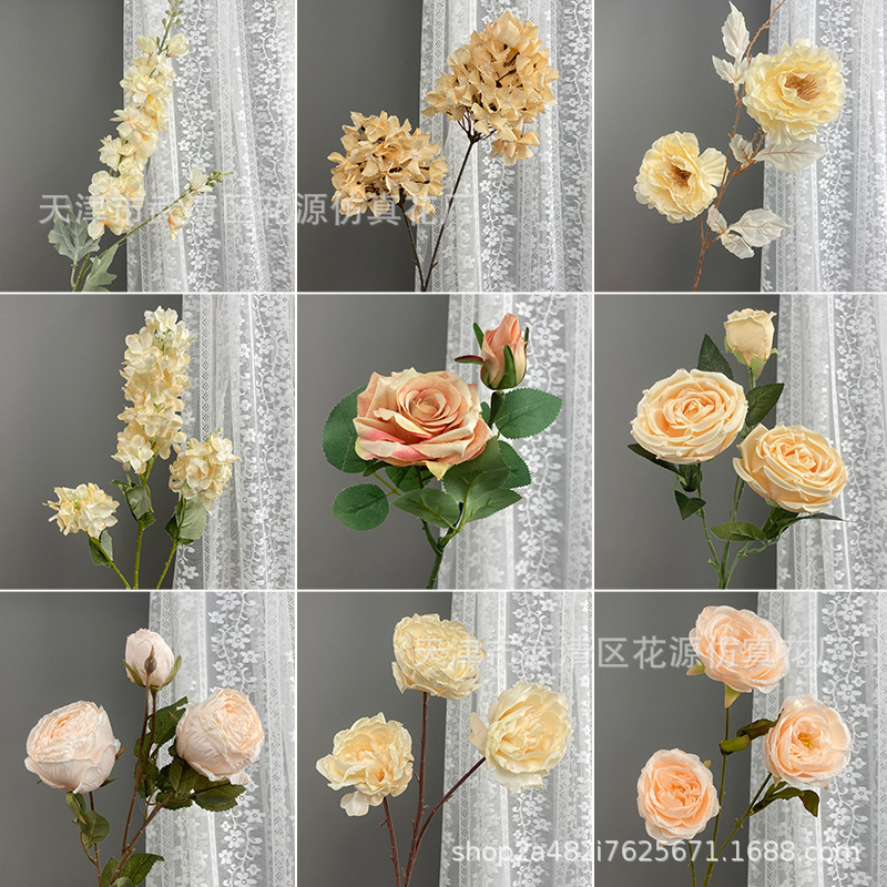 Seri sampanye baru bunga buatan mawar hydrangea bunga pernikahan baris bunga dekorasi hotel lanskap jendela