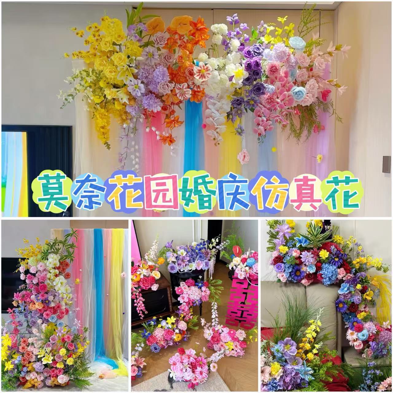 Monet Garden Pernikahan Imitasi Bunga Mal Jendela Dekorasi Set Bunga Dekorasi Pemandangan Luar Ruangan Tata Letak Seni Bunga Rangkaian Bunga Palsu