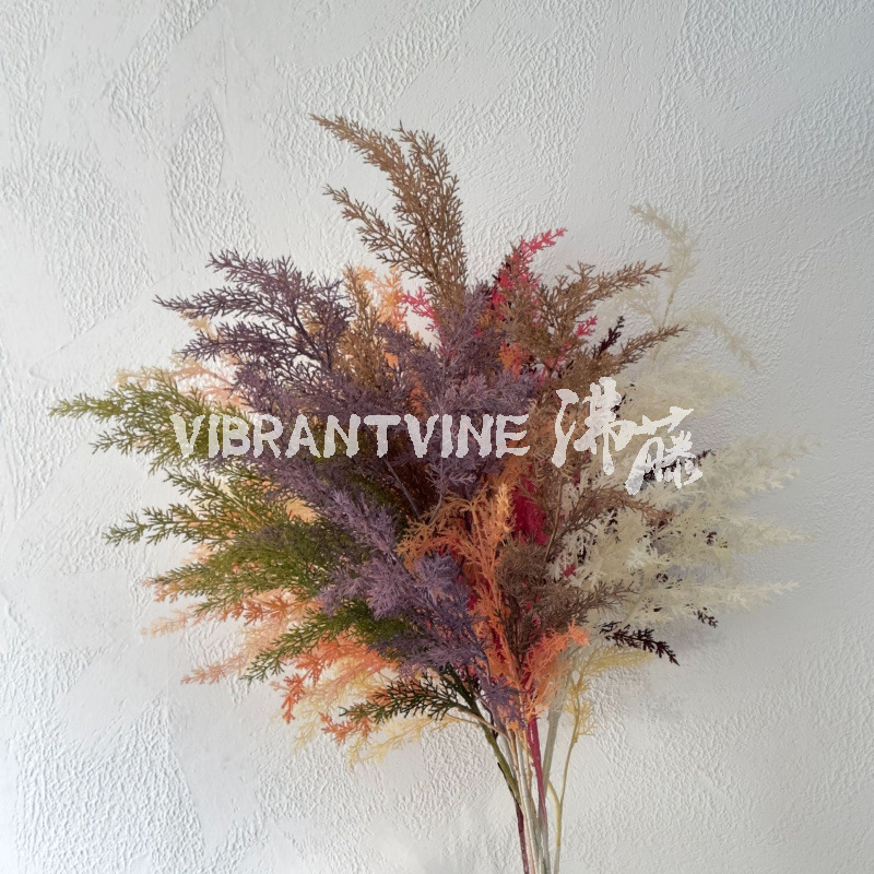 Simulasi penjualan langsung pabrik tanaman hijau misty pohon asap pinus rumput Misty dekorasi lanskap bunga buatan alami pernikahan dengan bunga