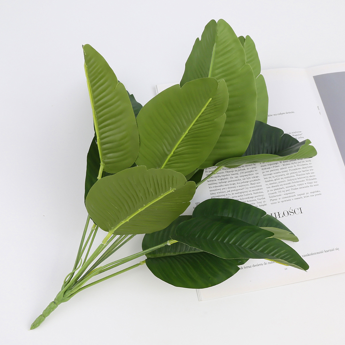 Tanaman hijau buatan, dekorasi lanskap lantai tanaman hijau, aksesori pengaturan bunga pot, daun kecil 12 kepala daun pisang