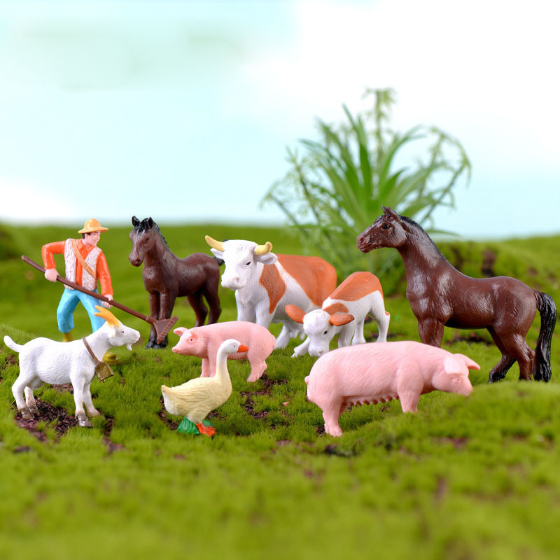 Dekorasi Microscape Peternak Kuda Sapi Sapi Bebek Babi Kecil Kue Kambing Piring Pasir Tangki Ikan Ornamen