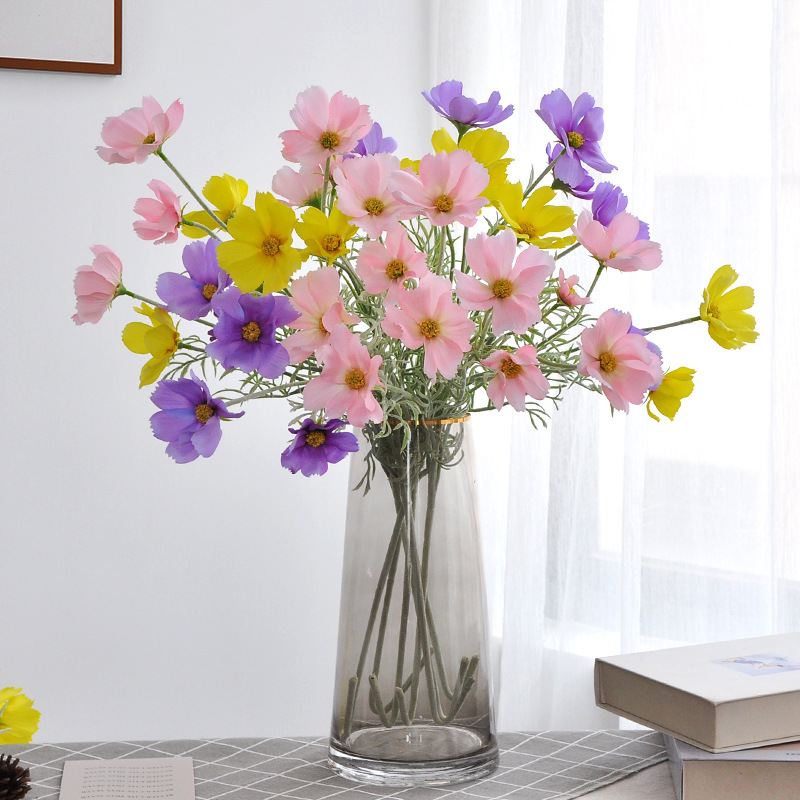 Kain sutra tunggal simulasi 3-kepala bunga hibiscus dekorasi interior ruang tamu ruang makan vas karangan bunga lanskap pabrik grosir
