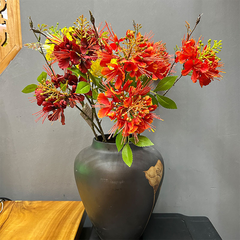 Bunga Phoenix Emas buatan, dekorasi lanskap taman lanskap hijau bunga palsu Emas tampilan jendela musim gugur bunga Phoenix super realistis