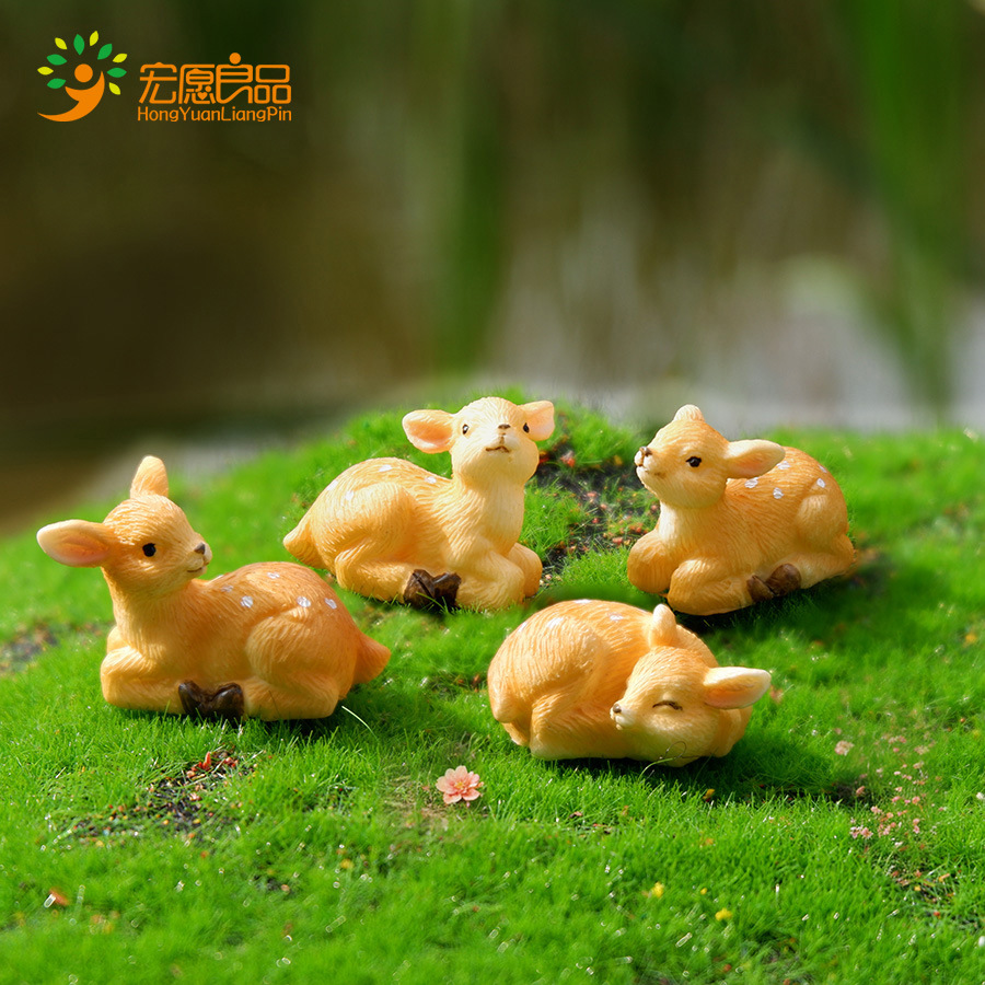 Microscape Creative Farm Ornamen Buatan Tangan Lucu Rusa Sika Rusa Kerajinan Resin Dekoratif Tanaman Pot Mulberry