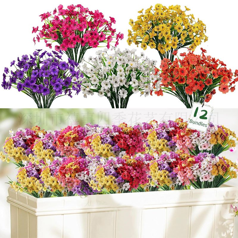 Simulasi Lintas Batas Tanaman Hijau 5 Rumput Musim Semi Buatan Bunga Plastik Palsu Violet Dekorasi Rumah Taman Anti UV