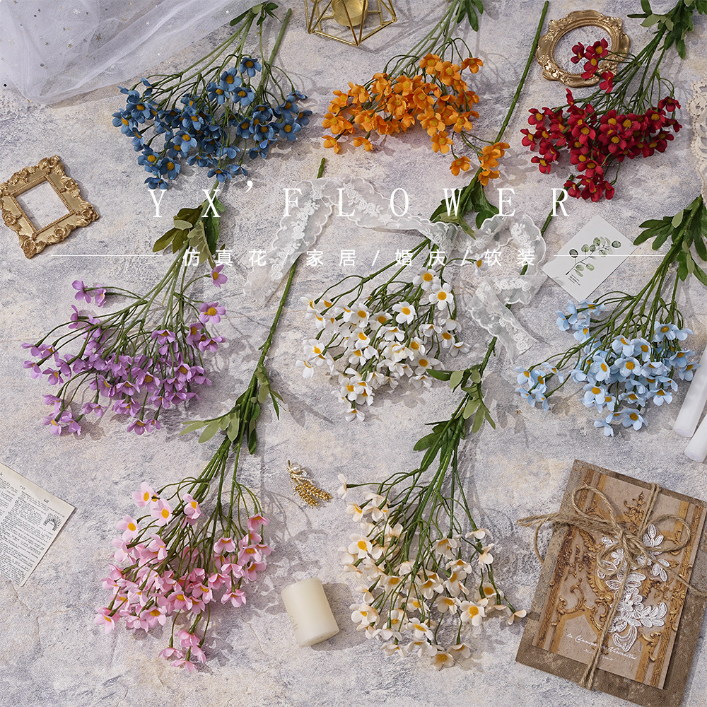 Set fotografi pernikahan krisan liar kecil simulasi segar gaya Eropa bunga chamomile bintang lima titik set fotografi pernikahan krisan liar gaya ins