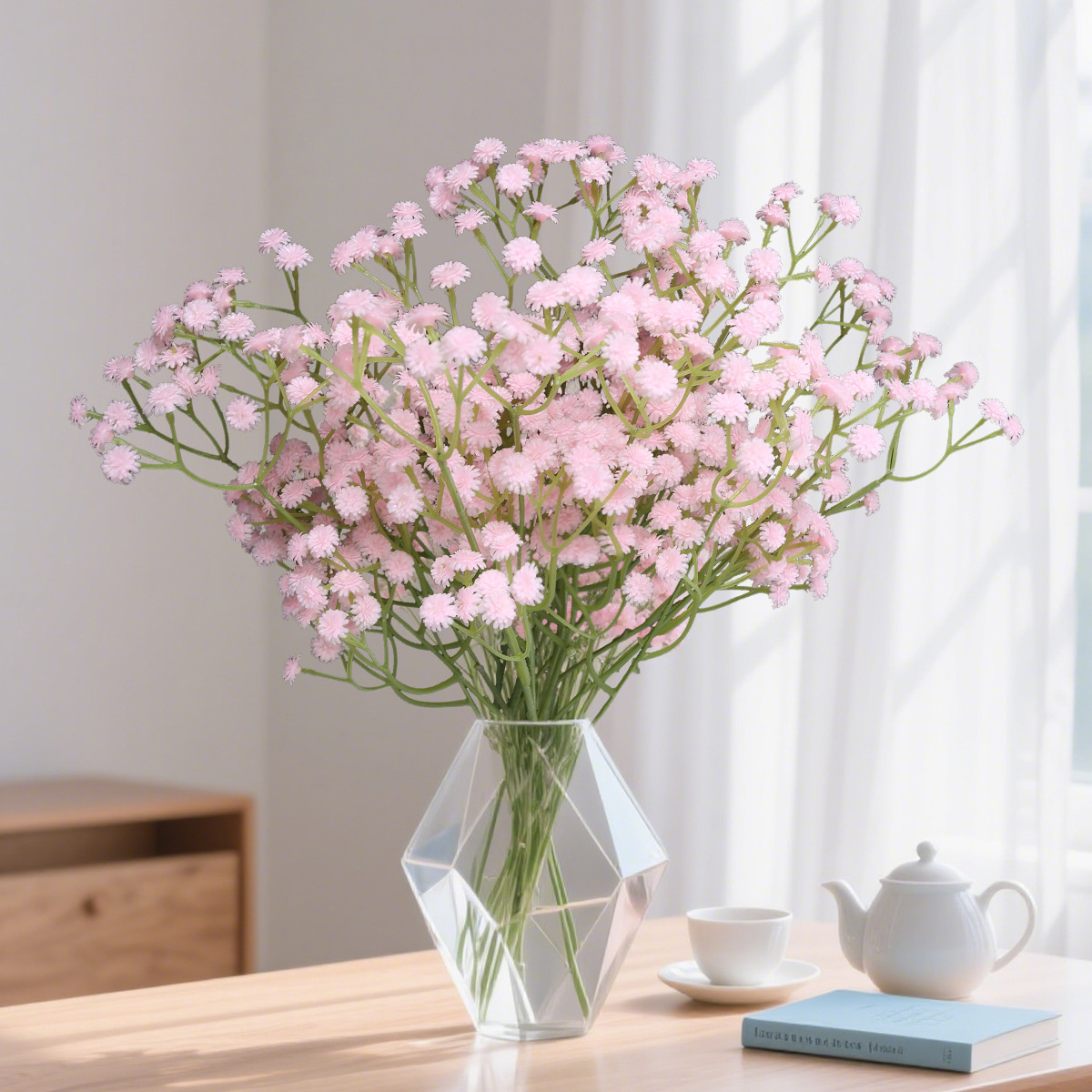Bunga gypsophila batang tunggal simulasi dari karet lembut dengan tekstur realistis, properti buket pernikahan, dekorasi hotel, bunga buatan, bunga plastik grosir.