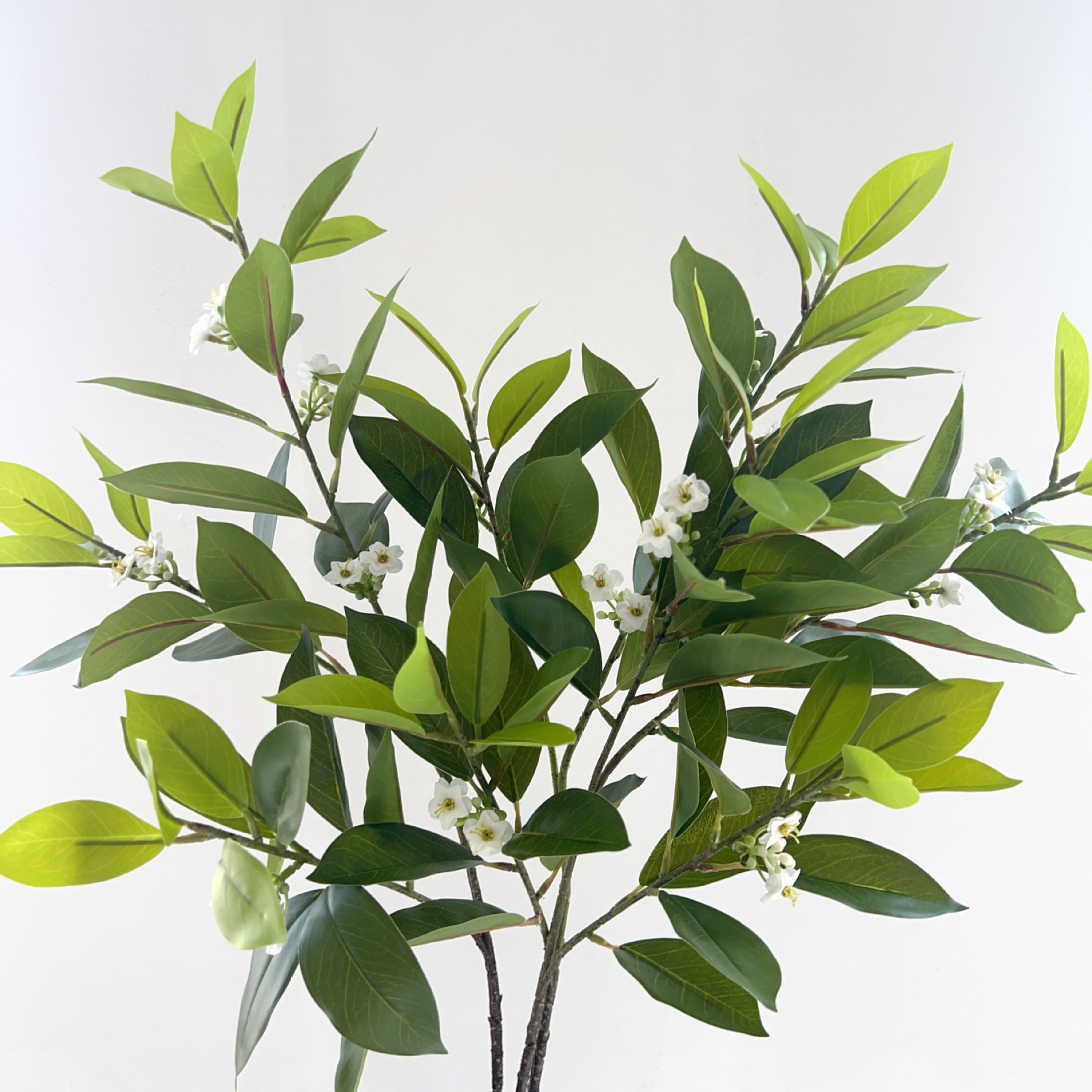 Cabang Panjang Simulasi Perekat Tata Letak Daun Hijau Tanaman Hijau Grosir Kayu Penataan Bunga Kayu Kaki Bebek Pakaian Lembut Lansekap Hijau Pinggiran Putih