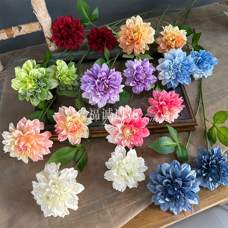 Lukisan Minyak Bunga Dahlia Imitasi Bunga Pernikahan Bunga Palsu Alat Peraga Bunga Dekorasi Rumah Bunga Jepit Bunga Tampilan Jendela 2 Kepala Dahlia