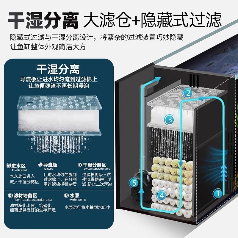 Silinder Aliran Atas Meja Model Baru Silinder Ikan Ikan Emas Terintegrasi Oksigen Sirkulasi Filtrasi Ekologi Filter Sisi Kaca Super Putih