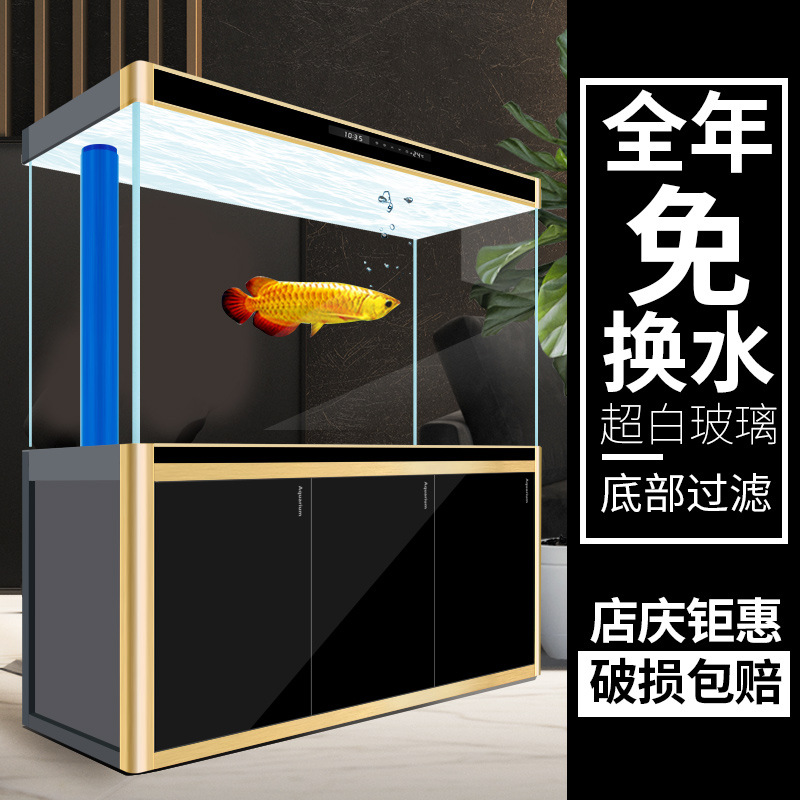 Tangki ikan akuarium ruang tamu lantai rumah tangga besar super putih kaca bawah filter partisi layar ekologis bebas air