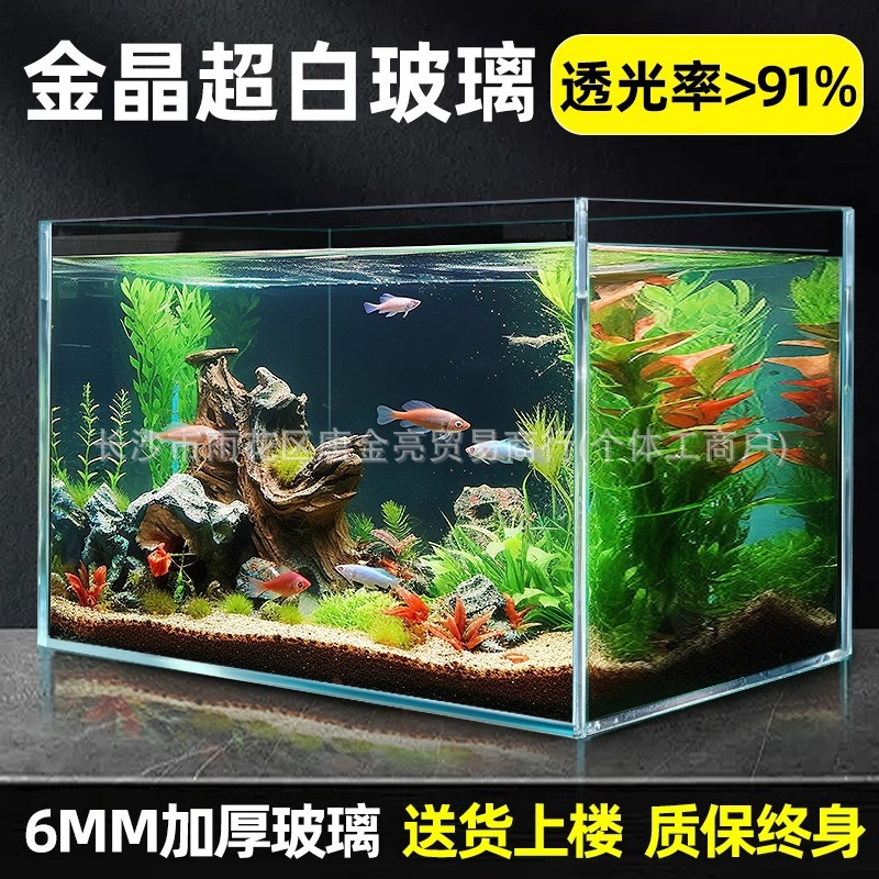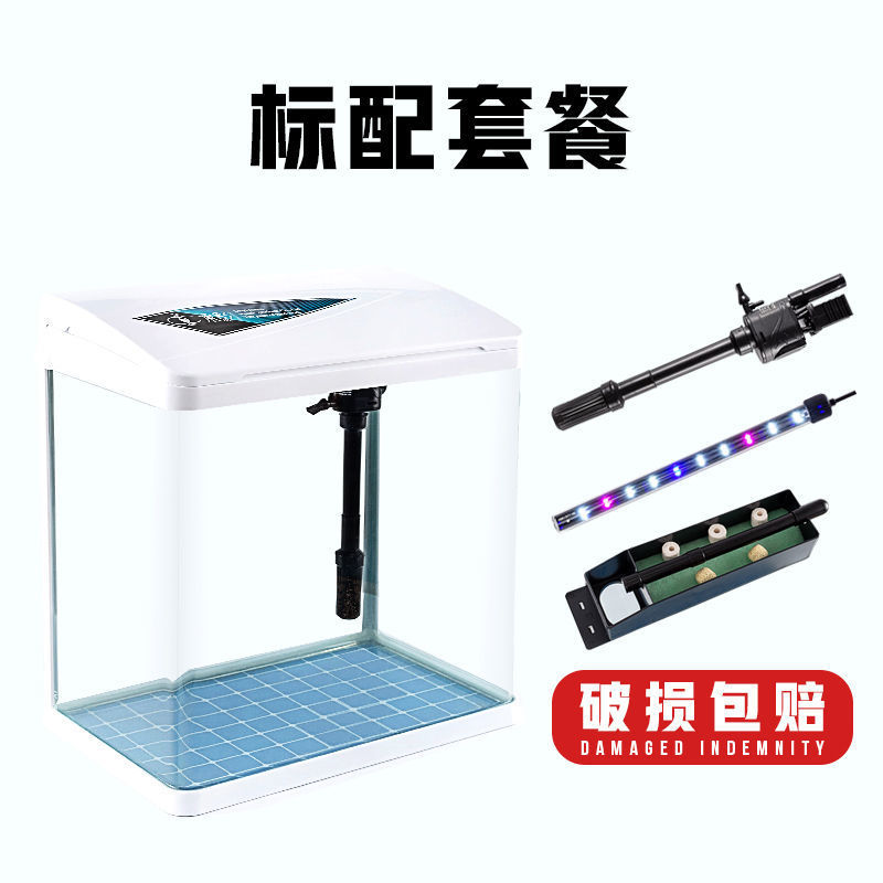 Silinder Ikan Super Putih Silinder Kaca Ruang Tamu Eco Kecil Rumahan Ikan Ikan Mas Beku Rumahan Model Baru Tangki Akuarium Persegi Panjang