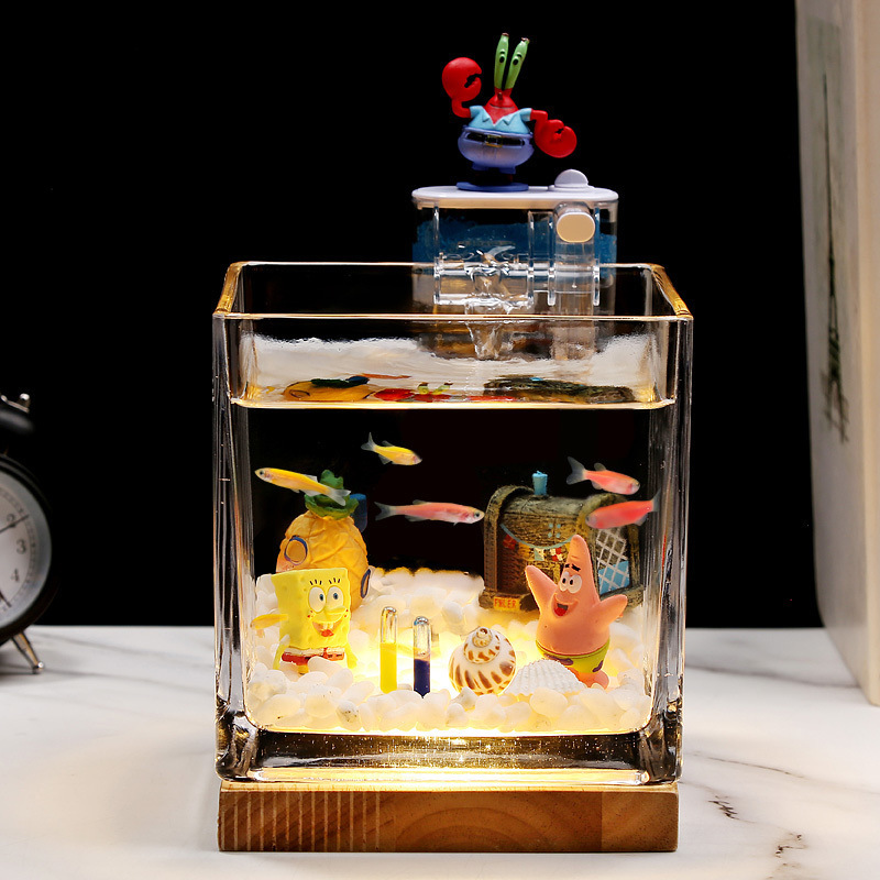Super Putih Tebal Ikan Tangki Ikan Kecil Khusus Kaca Persegi Spongebob Ruang Tamu Meja Kantor Rumah Tangga