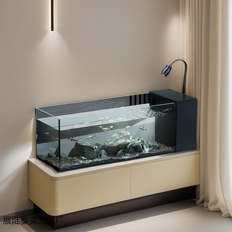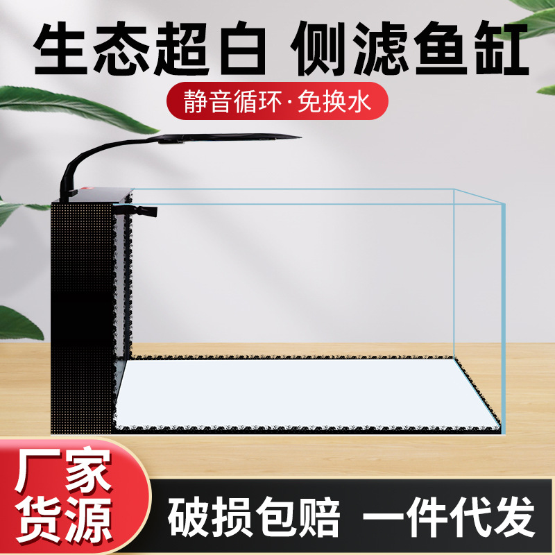Pasokan Produsen Tangki Ikan Kaca Super Putih Ruang Tamu Akuarium Rumah Tangga Kecil Ekologis Side Filter Ikan