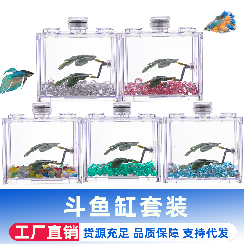 Kotak Ikan Kotak Ikan Bentuk Persegi Plastik Transparan Kecil Kotak Makan Meja Meja Akilik Mini Tertutup