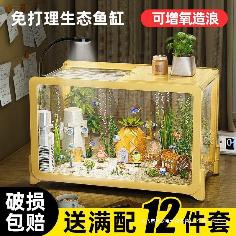 Akuarium Akuarium Ekologis Meja Ikan Emas Orang Malas Plastik Balkon Transparan Ruang Tamu Tangki Pemandangan Ruang Keluarga Ukuran Kecil dan Menengah Rumah Tangga