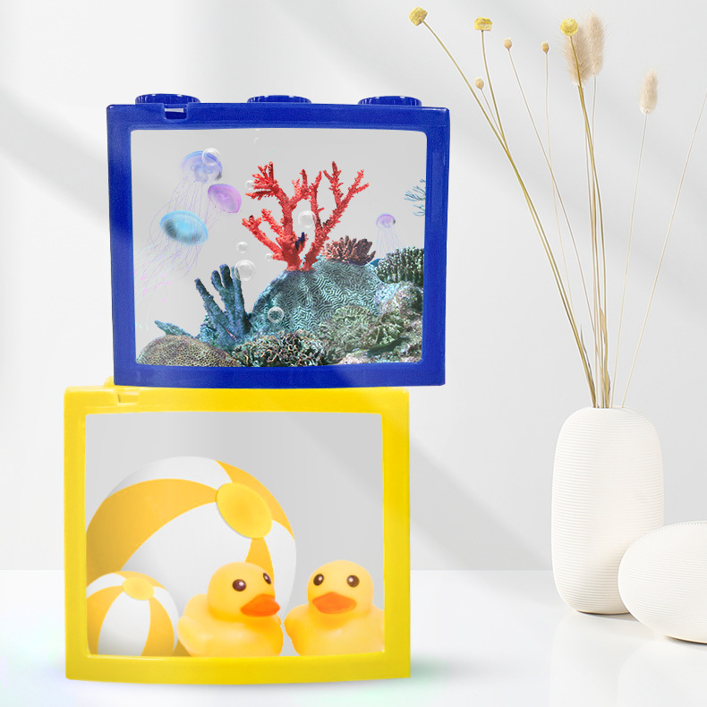 Dalam stok Kreatif desktop tangki ikan kecil busur silinder blok bangunan tangki ikan dengan lampu Douyu kotak mini ember tangki ikan grosir