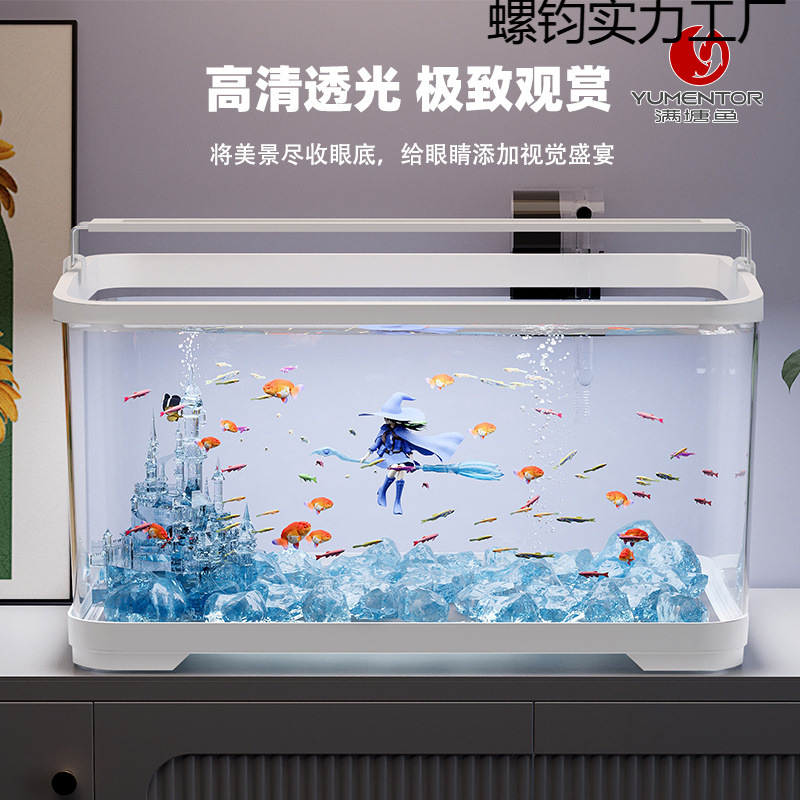 Tangki Ikan Super Putih Peredaran Diri Ruang Tamu Akuarium Meja Orang Malas Rumah Tangga Tanpa Ganti Air Kaca Tangki Ikan Emas Kecil