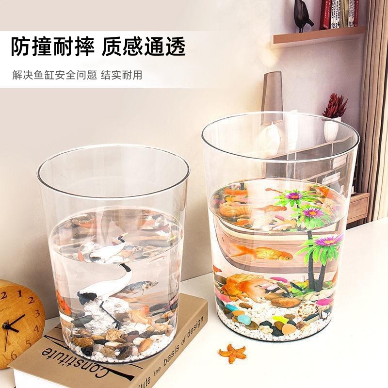 Tangki ikan rumah tangga Internet selebriti transparan tangki ikan plastik ruang tamu desktop silinder tangki ikan hidroponik lanskap ember ekologis kreatif