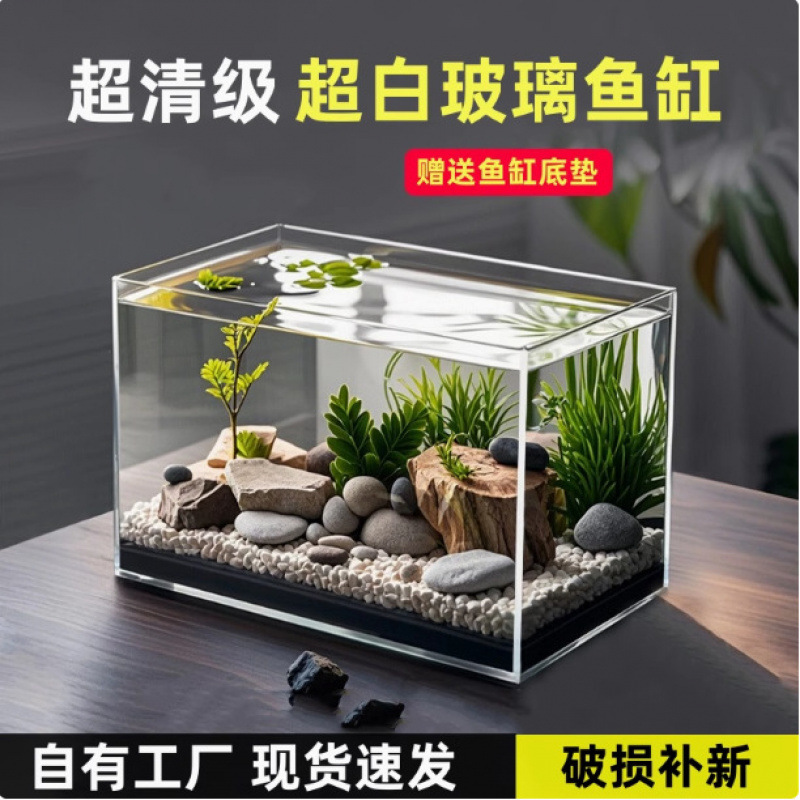 * Tangki Ikan Kecil Kaca Super Putih Ruang Tamu Kecil Hias Ikan Kecil Tanaman Hidroponik Kura-kura Tangki Persegi Rumah Tangga Ekologi