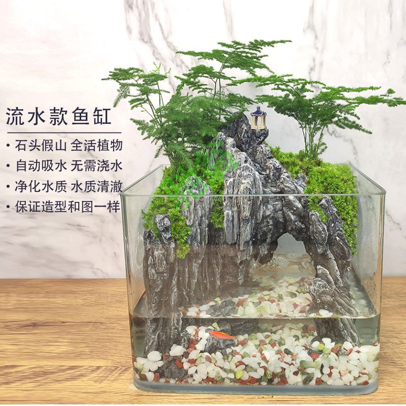 Mini Fish Aquarium Mini Silinder Kaca Kecil Dekorasi Desktop Kreatif Ruang Tamu Lampu Hias Kelas Tinggi Khusus Orang Malas