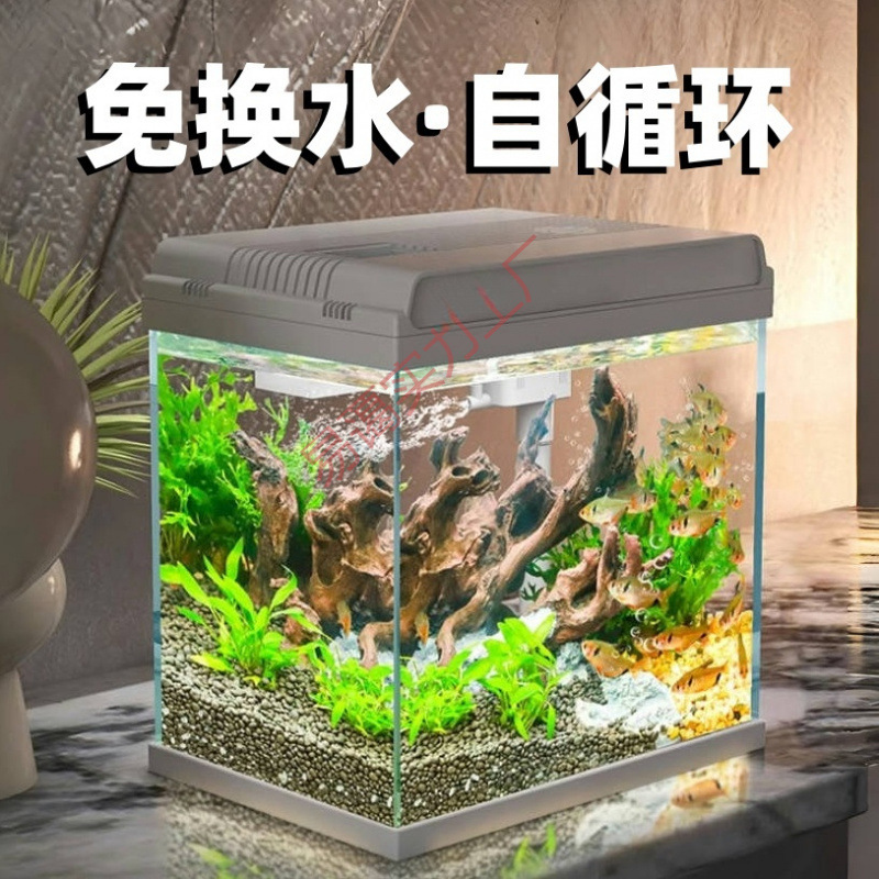 Tangki Ikan Super Putih Model Baru Peredaran Diri Meja Kecil Ruang Tamu Rumah Tangga Tangki Ikan Emas Tanpa Ganti Akuarium Malas Kaca