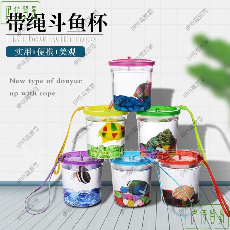 Kotak plastik tebal tangki ikan mini silinder kotak plastik kecil tangki ikan dengan tutup kotak ikan kemasan portabel