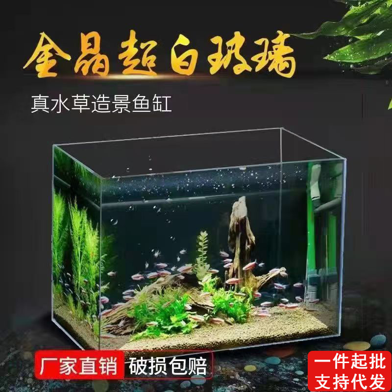 Produsen sumber tangki ikan kecil bisu akuarium bebas air kaca super putih filter belakang tangki ikan ruang tamu tangki ikan rumah tangga