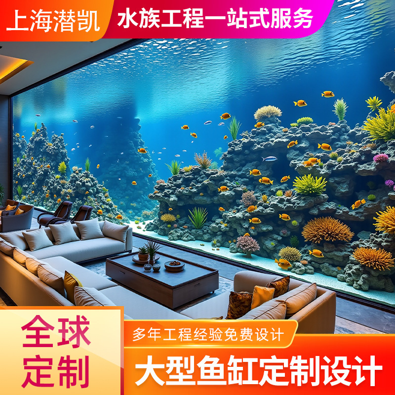 Tangki ikan ruang keluarga besar, penyaring ikan bawah mewah super putih kaca akuarium ruang keluarga dinding partisi lantai