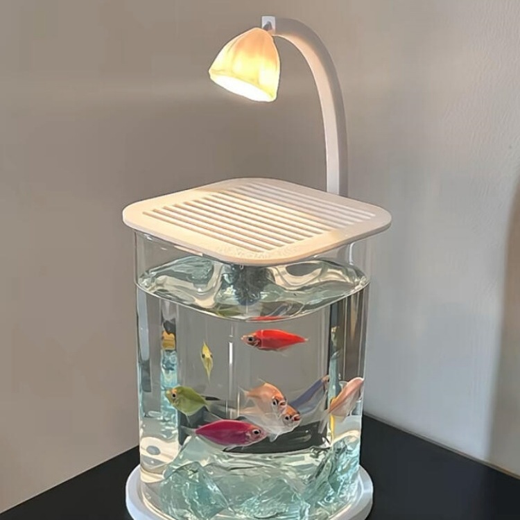 Akuarium ikan cupang super putih kecil orang malas tangki kaca ruang tamu dekorasi meja kreatif lampu hias