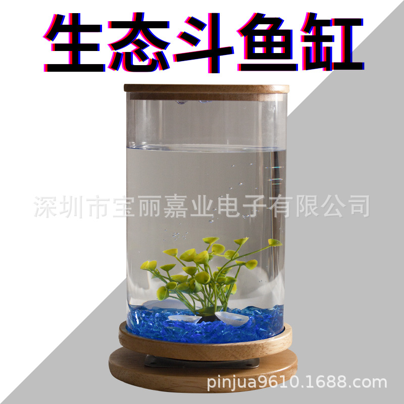 Bundar putar tangki ikan meja ekologi tangki ikan kreatif kantor akrilik pandangan mikro tangki ember ikan lampu pengendali jarak jauh