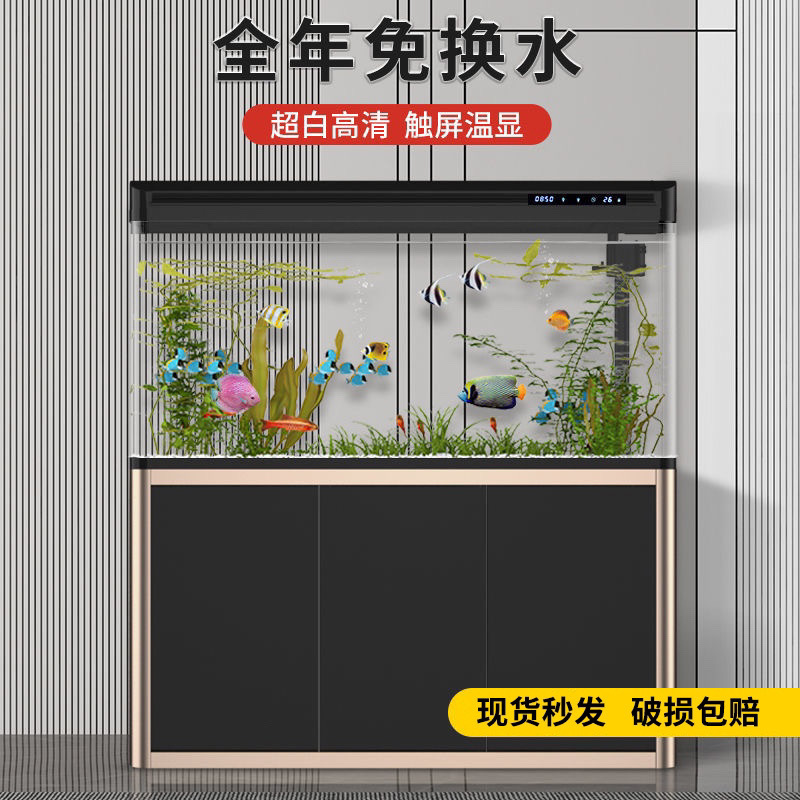 Tangki ikan mewah ringan ruang tamu rumah keluarga sedang dan kaca besar lantai ekologis akuarium partisi layar 2023 baru