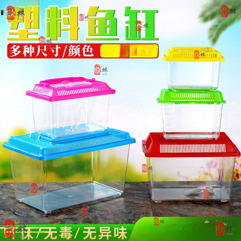 Tabung makanan kotak penyu ikan emas tangki ikan tertutup transparan kura-kura portabel besar, sedang dan kecil kotak transportasi nomor hewan peliharaan