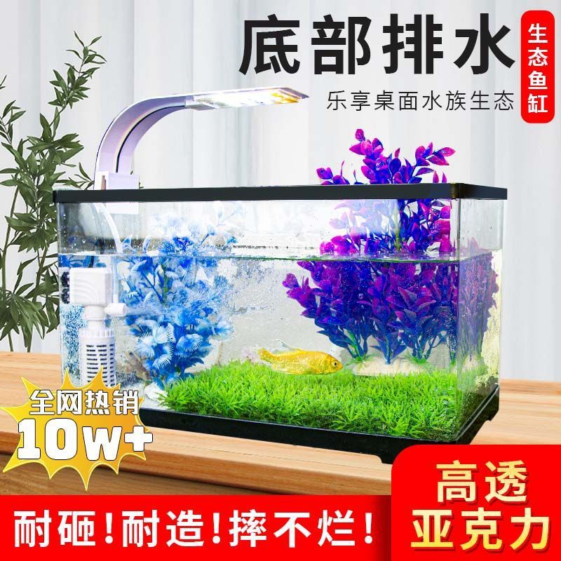 Silinder Ikan Super Putih Silinder Kaca Ruang Tamu Eco Kecil Rumahan Ikan Ikan Mas Beku Rumahan Model Baru Tangki Akuarium Persegi Panjang
