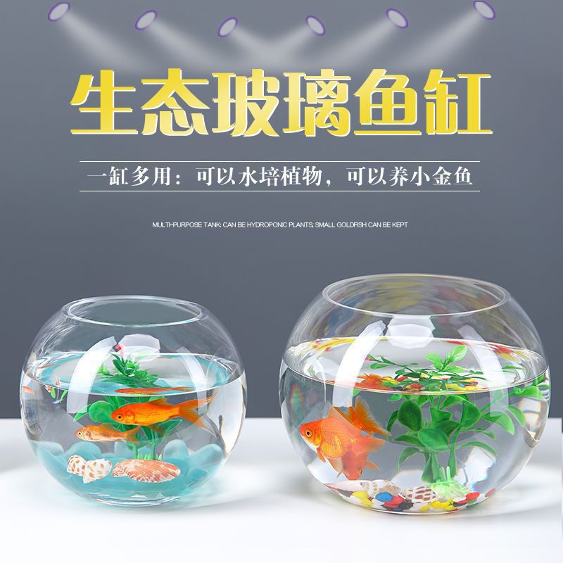 Tangki Ikan Eco Desktop Kecil Transparan Tangki Ikan Emas Bentuk Bulat Kaca Imitasi Plastik Akrylic Ukuran Ekor