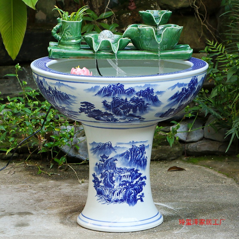 Jingdezhen Keramik Ikan mas Tangki Balkon Ruang Kantor Lantai Rumah Tangga Ornamen Bersirkulasi Air Tangki Ikan Halaman Besar