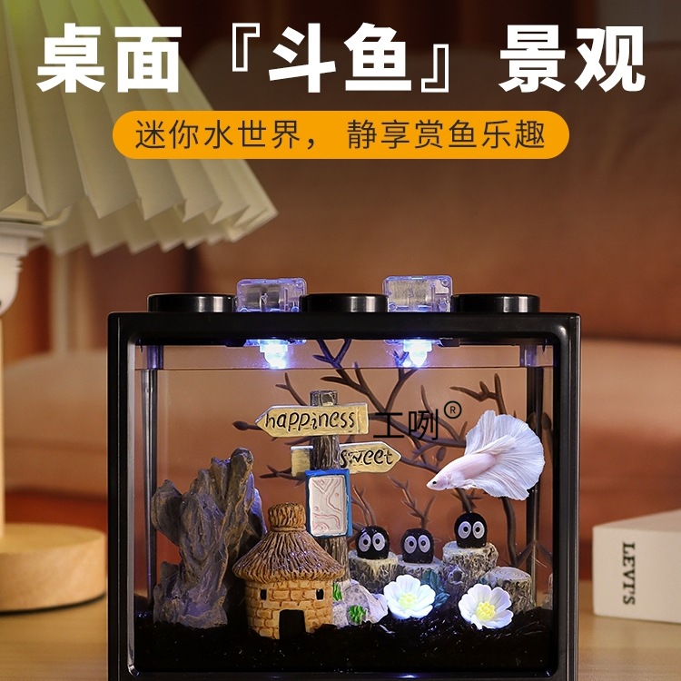 Akuarium ikan cupang super putih kecil orang malas tangki kaca ruang tamu dekorasi meja kreatif lampu hias