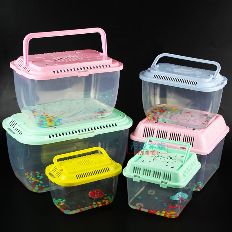 Perlengkapan Tangki Ikan Mas Akuarium Sekali Pakai Transparan Kotak Plastik Anak-anak Kotak Ikan Tangki Ikan Persegi Botol Kecil