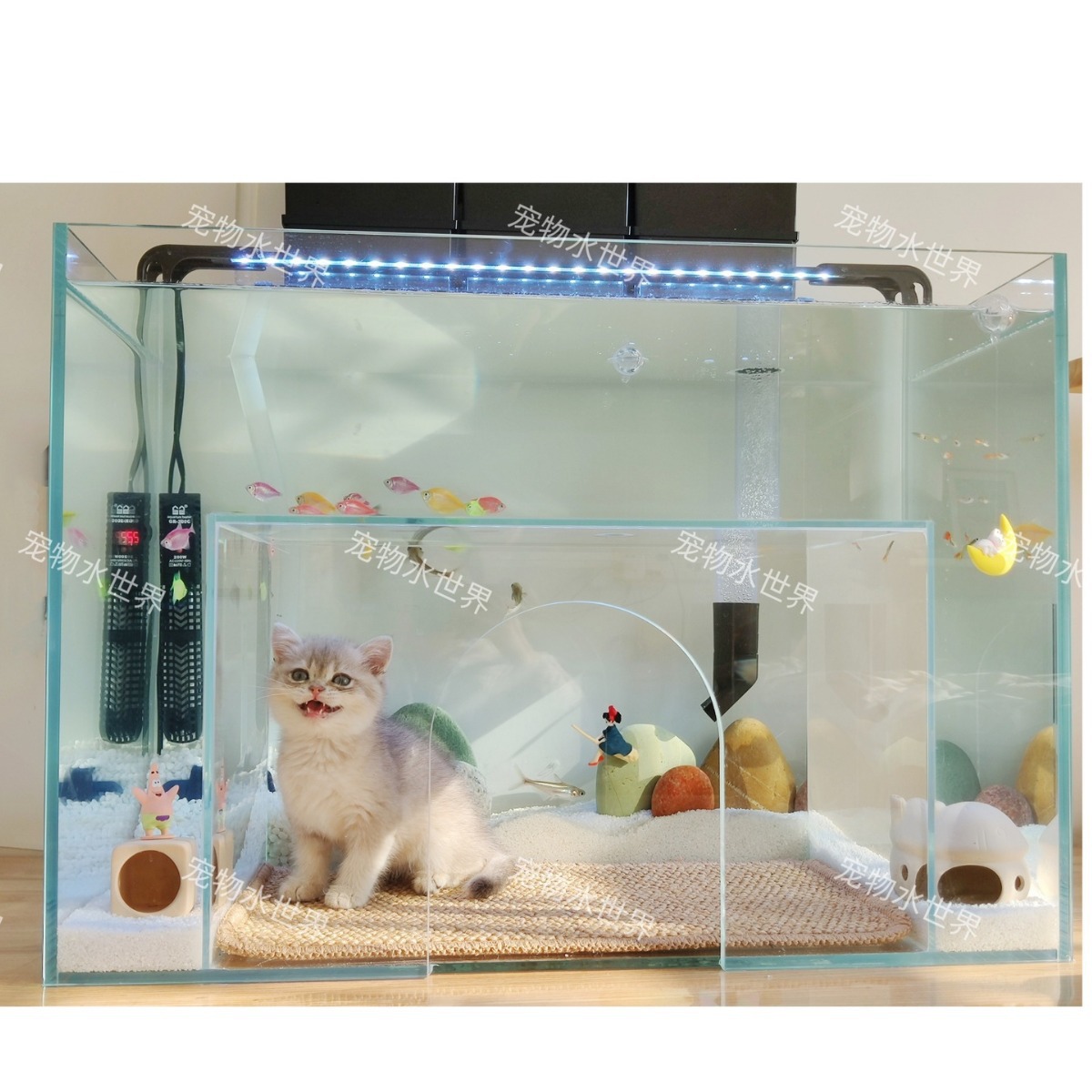 Tangki Ikan Sarang Kucing Warna Putih Kaca Super Putih Lima Garis Kristal Emas Tangki Ikan Kucing Selebriti Internet Model Sama dengan Tok Tok Tok Tok