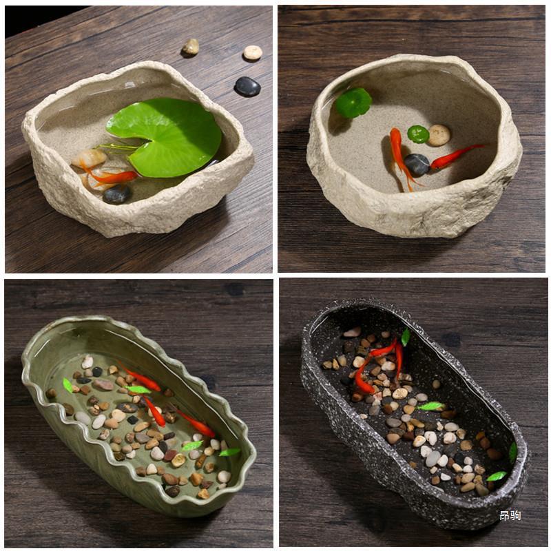 Tangki ikan kuno batu imitasi kolam renang hidroponik mangkuk lotus tidur pot teratai ruang tamu pot bunga keramik pot kura-kura tangki ikan kecil