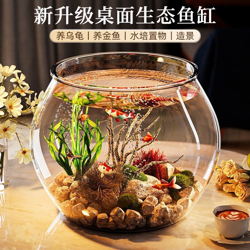 Panci Ikan Meja Meja Meja Meja Bentuk Bulat Kaca Panci Ikan Kecil Rumahan Kecil Meja Mini Panci Kura-kura Khusus Yukang