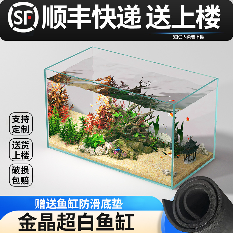 Jinjing Gelas Ikan Super Putih Tangki Ikan Ruang Tamu Rumah Tangga Ukuran Besar Kecil dan Menengah Kustom Kustom Persegi Panjang Tangki Kura-kura Telanjang