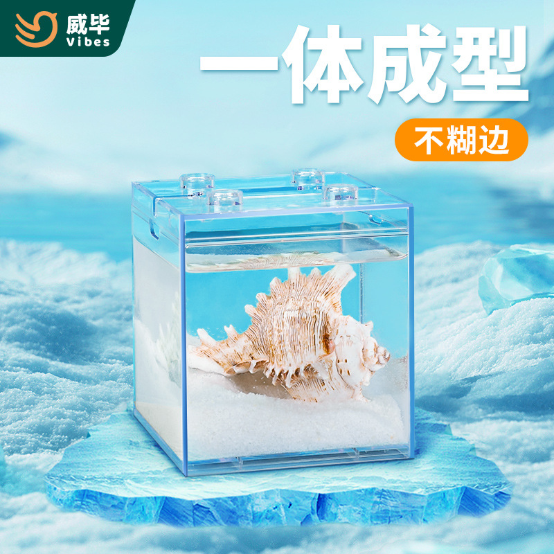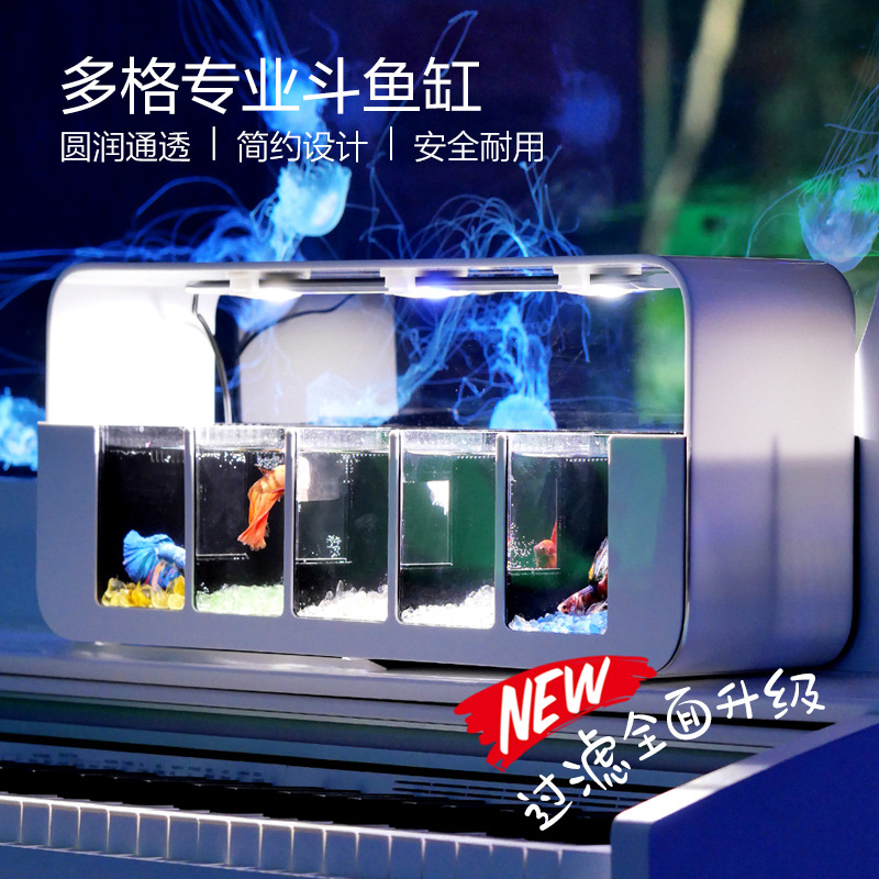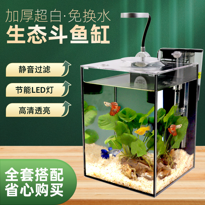 Akuarium ikan cupang super putih kecil orang malas tangki kaca ruang tamu dekorasi meja kreatif lampu hias