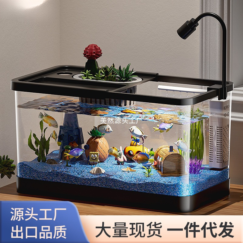 Tangki Ikan Lansekap Ruang Tamu Meja Rumah Tangga Filter Ekologis Oksigen Akuarium Unin Kantor Tangki Penyu Transparan Tinggi