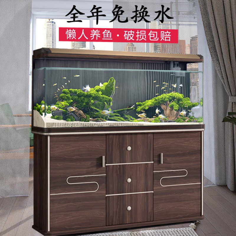 Family fish tank ornamental fish tank super putih kaca rumah ruang tamu akuarium baru tangki ekologi malas kecil dan menengah
