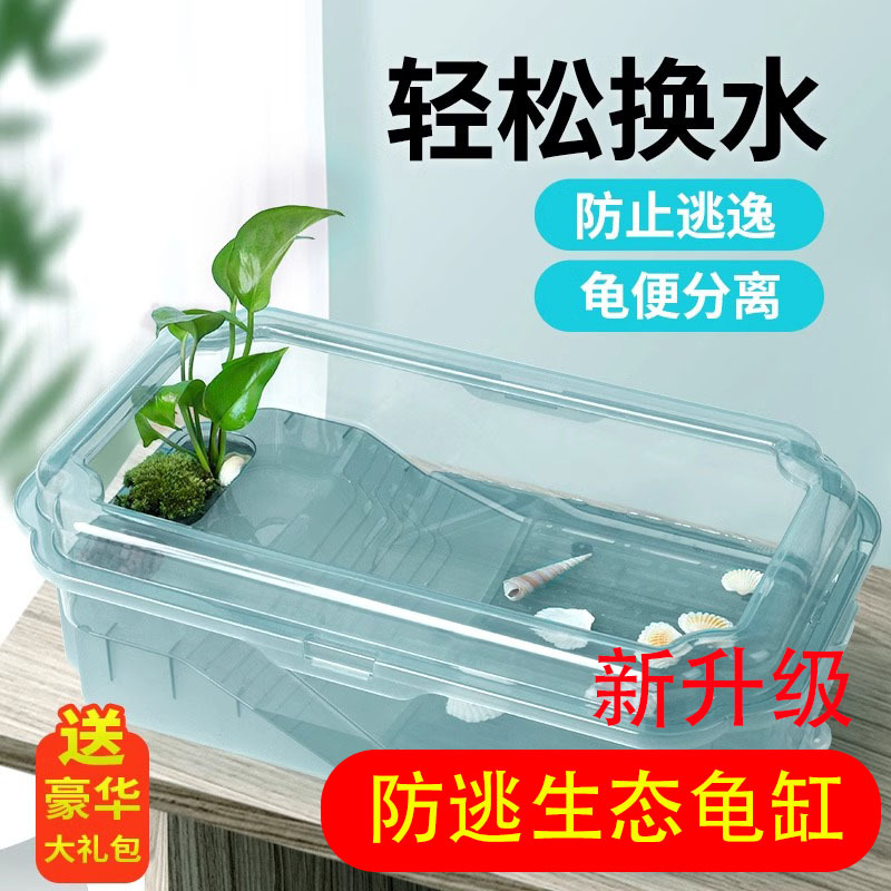 Pot kura-kura rumah tangga dengan meja pengering kotak bibit penyu air kotak makan kandang kura-kura peliharaan pot ekologi penyu